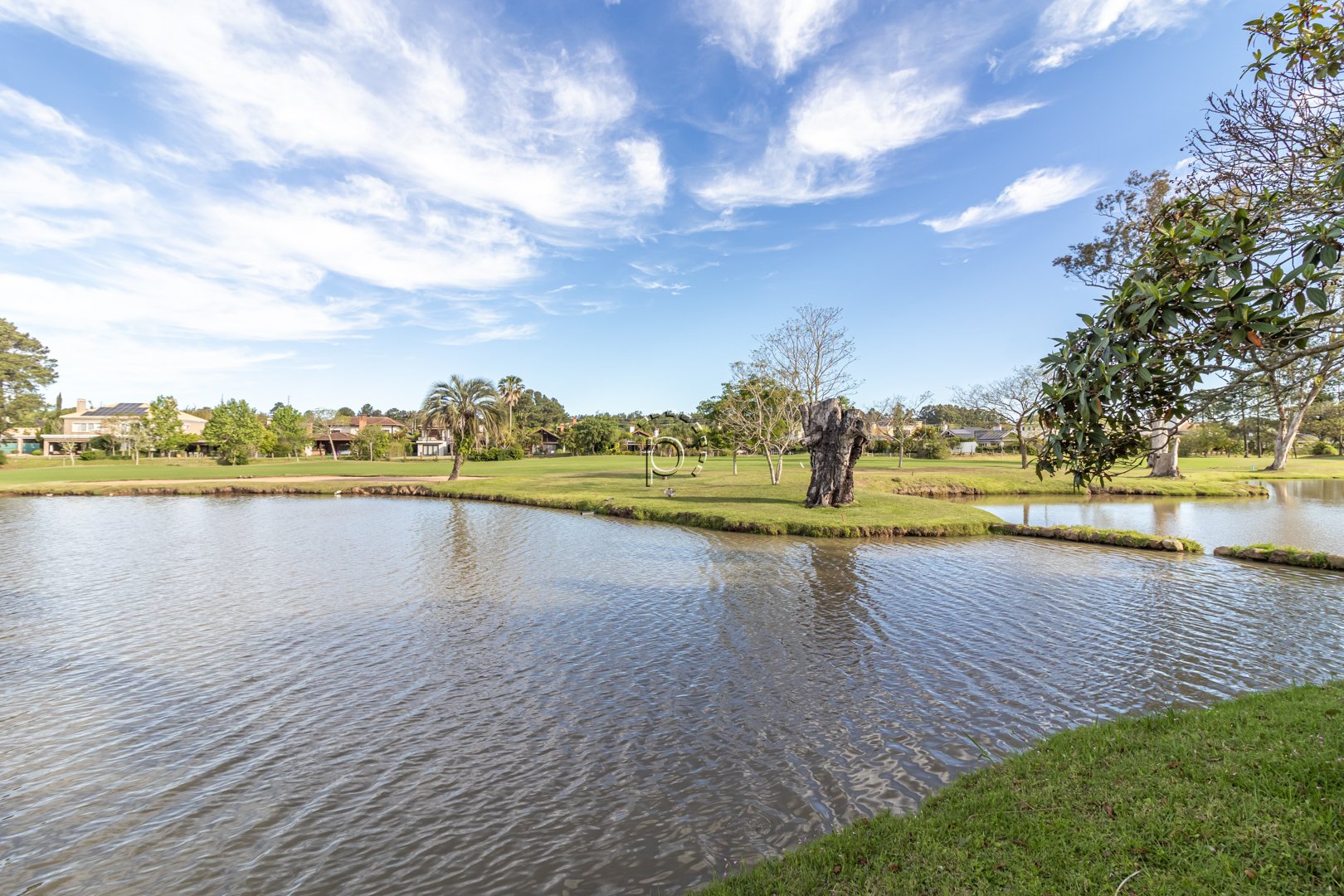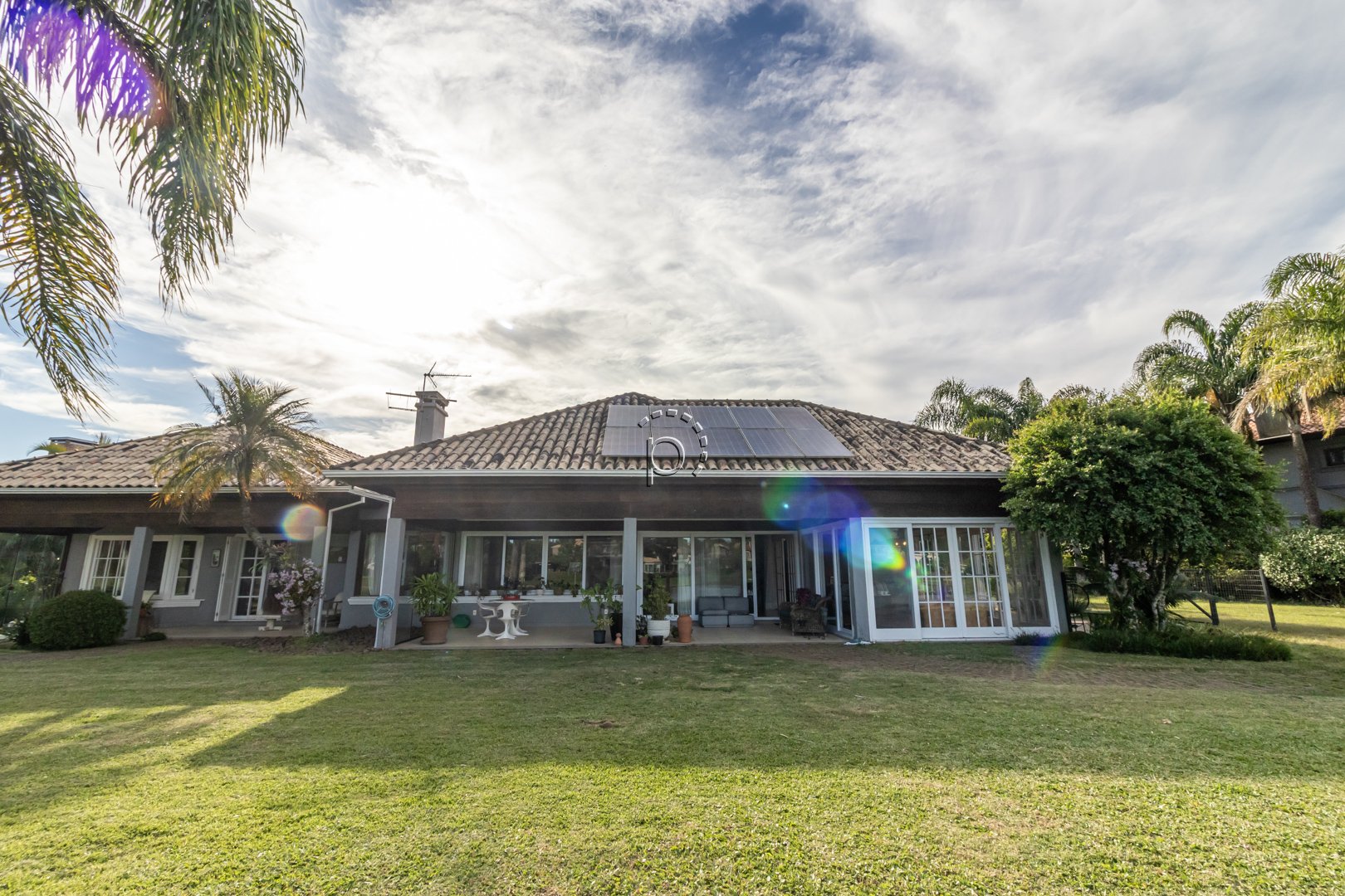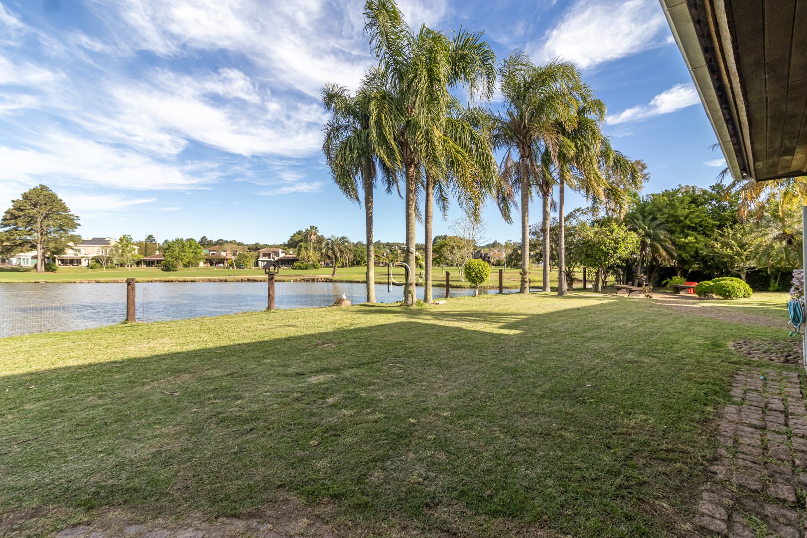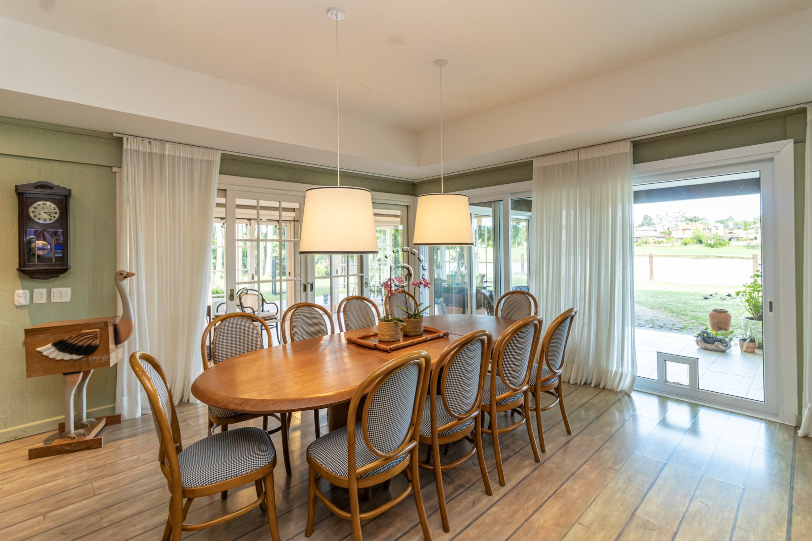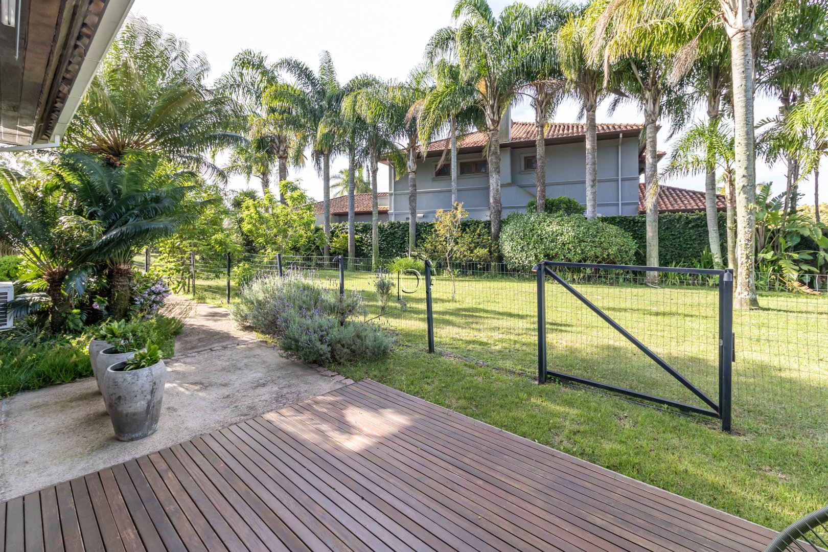 O pátio é um verdadeiro refúgio: paisagismo impecável, recantos de descanso e uma vista panorâmica para o lago e o campo de golfe, proporcionando um pôr do sol diferente e encantador a cada fim de tarde.
