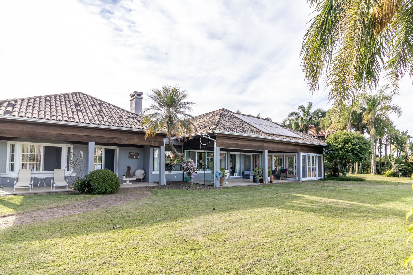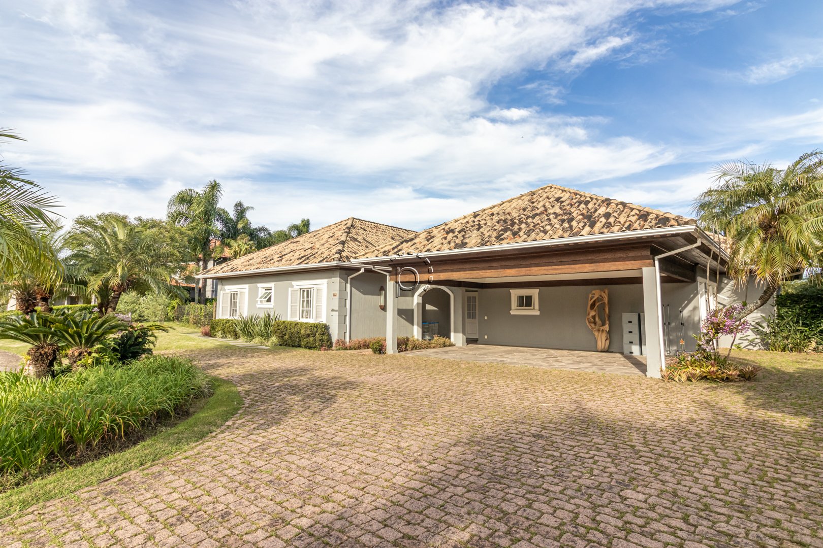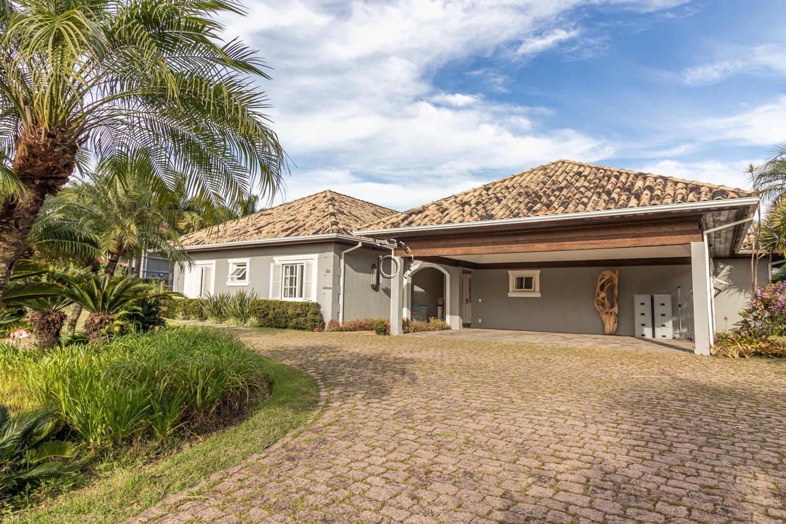 De arquitetura clássica com toques rústicos, a residência combina sofisticação e aconchego em cada detalhe.