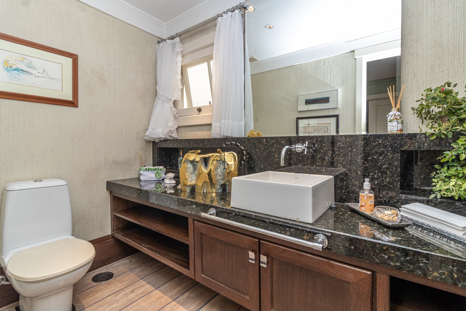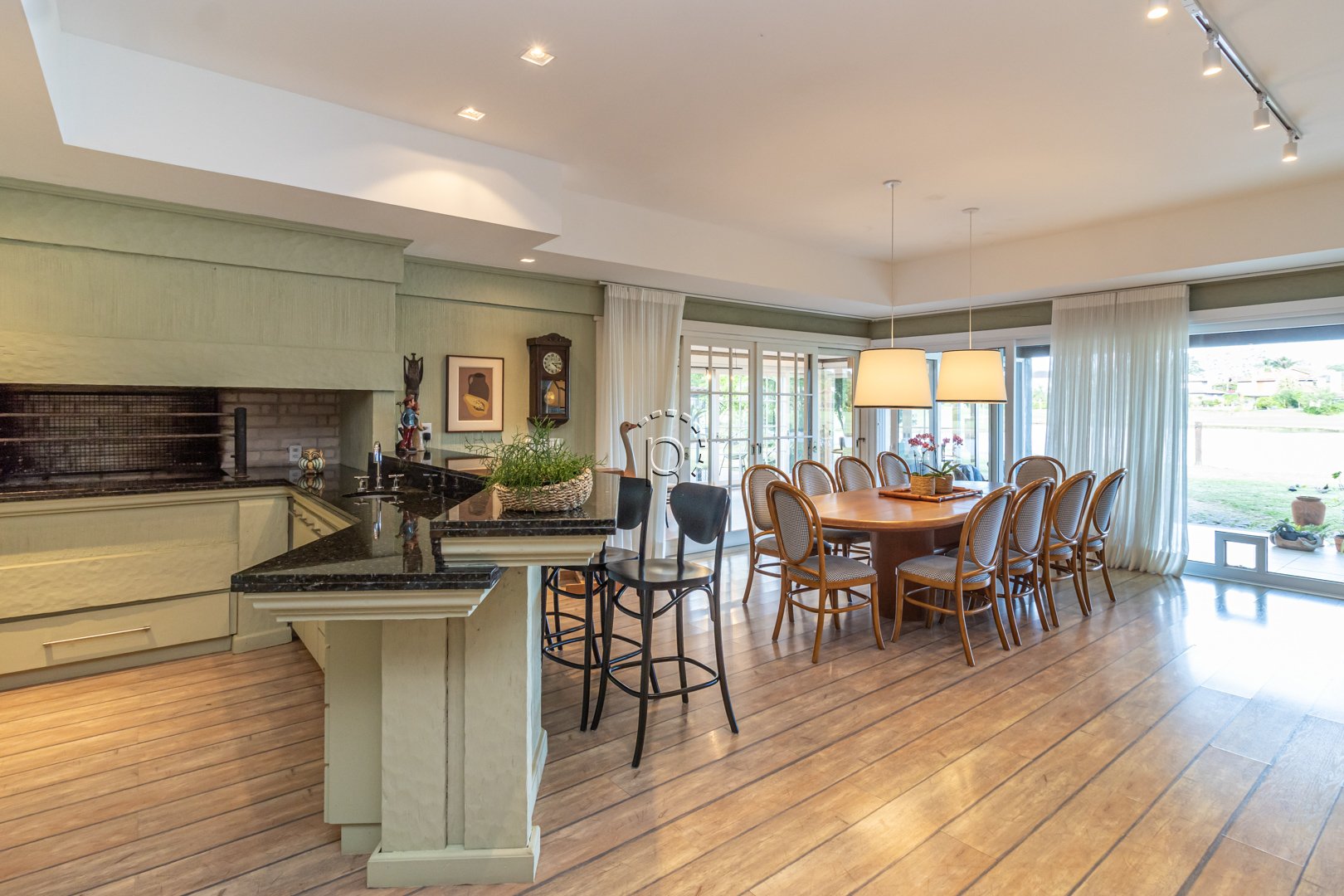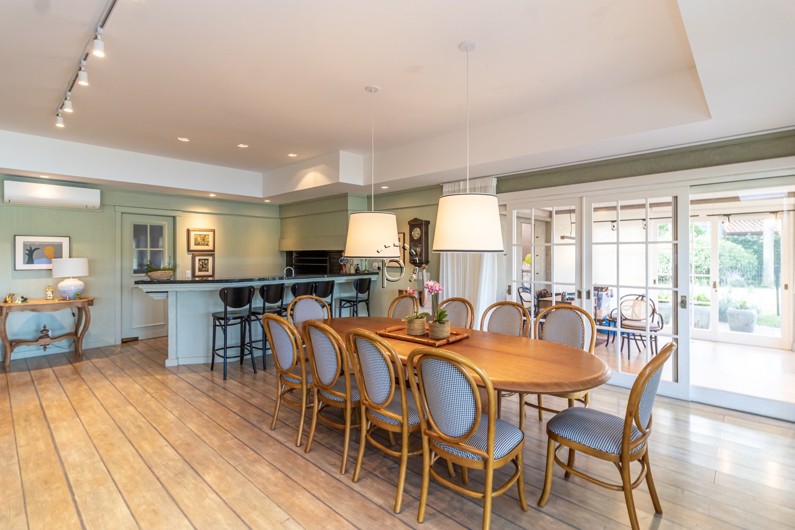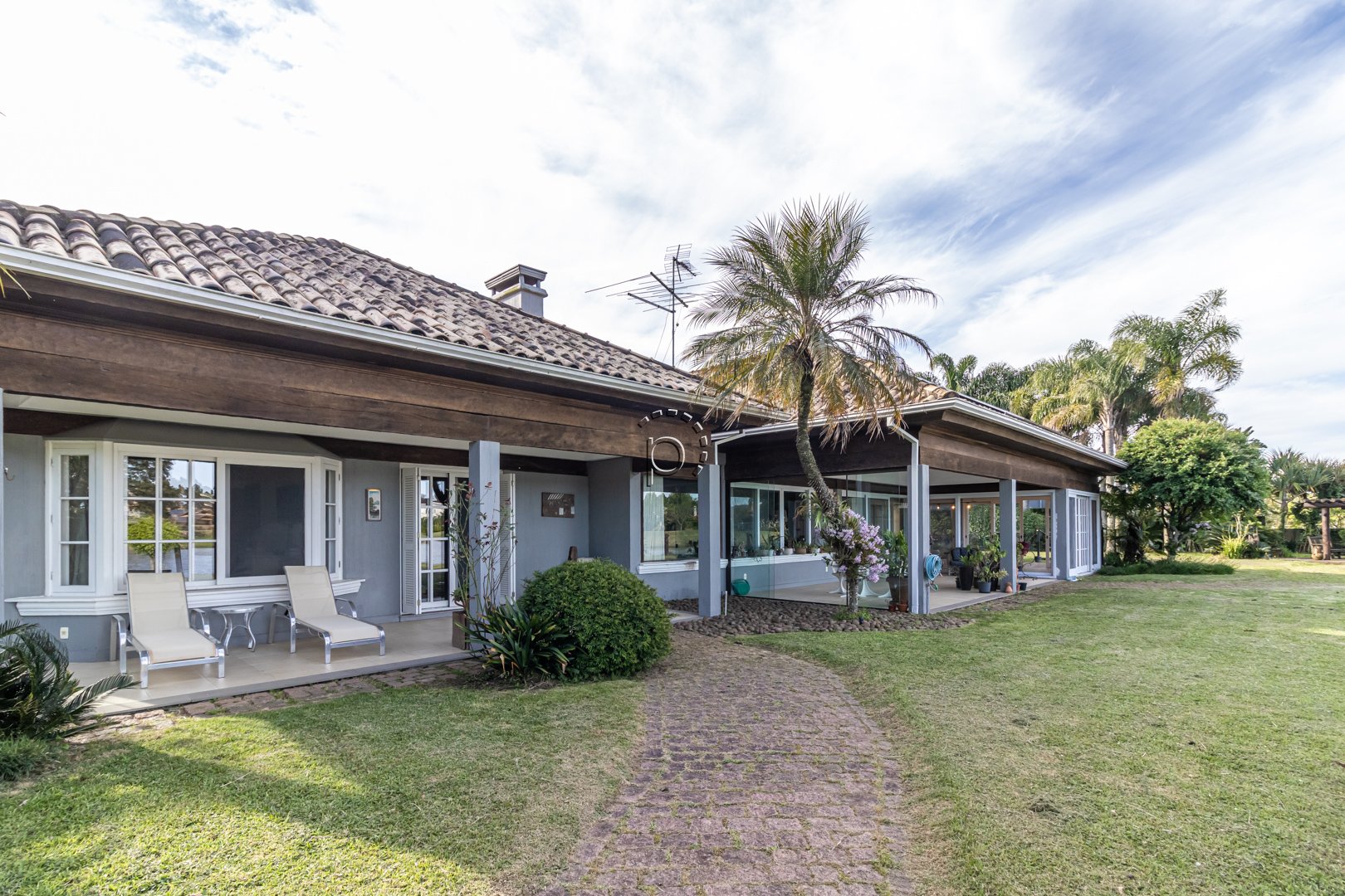 De arquitetura clássica com toques rústicos, a residência combina sofisticação e aconchego em cada detalhe.
