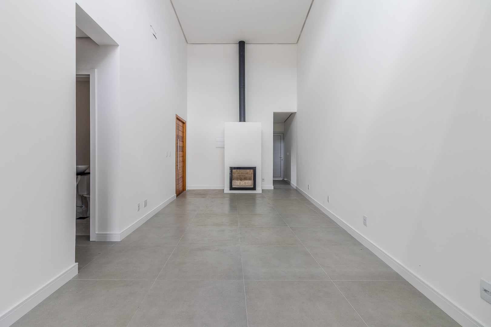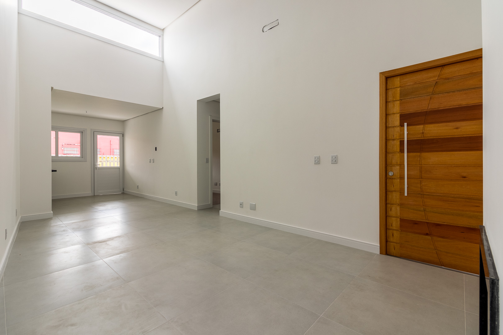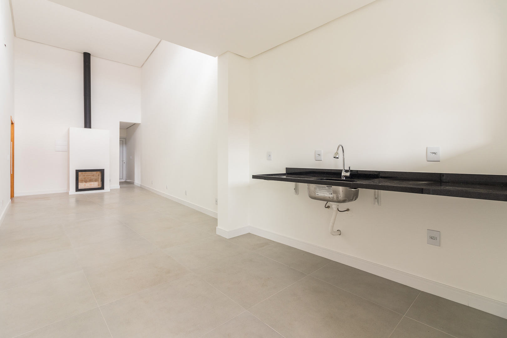 Passow Imóveis vende casa TÉRREA NOVA em condomínio com infra estrutura completa de lazer. São 03 dormitórios sendo duas suítes, banheiro social, living com lareira e pé direito duplo com cozinha integrada, bem iluminada, varanda com churrasqueira e pátio. 02 vagas de garagem.