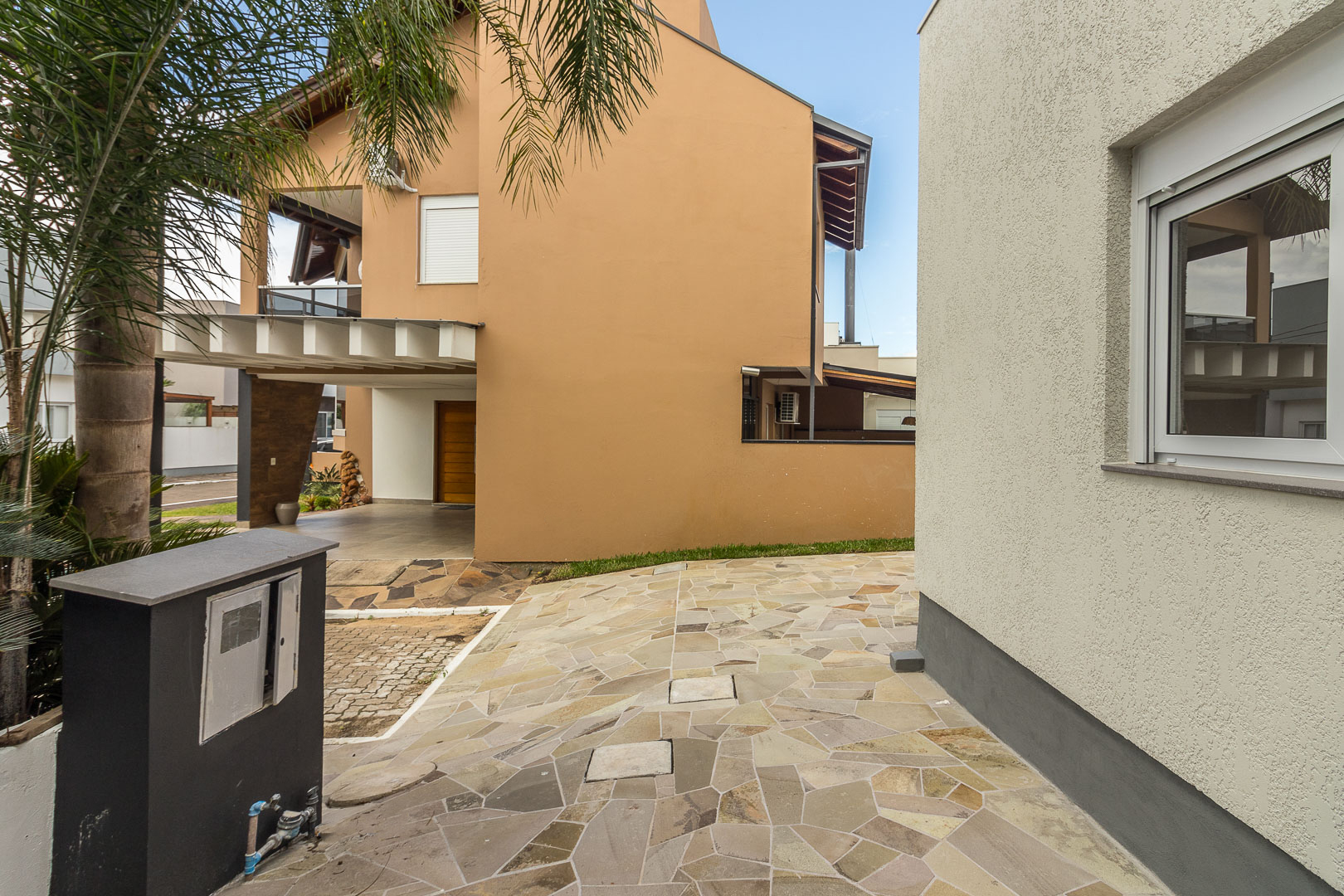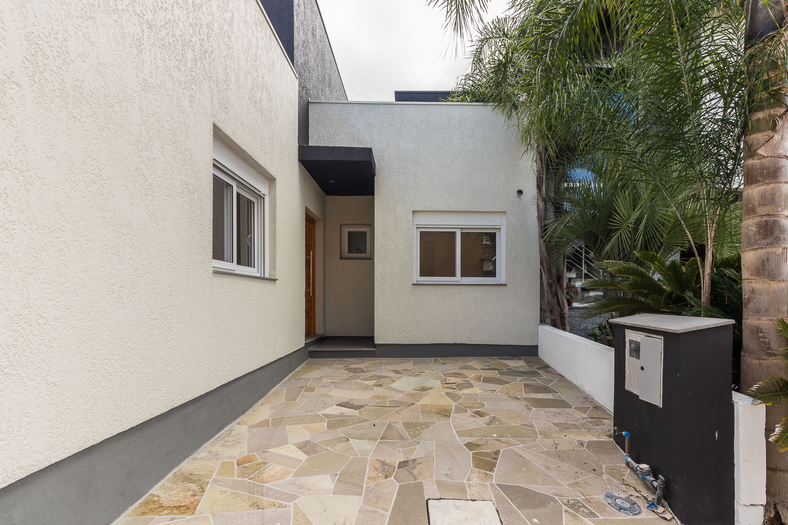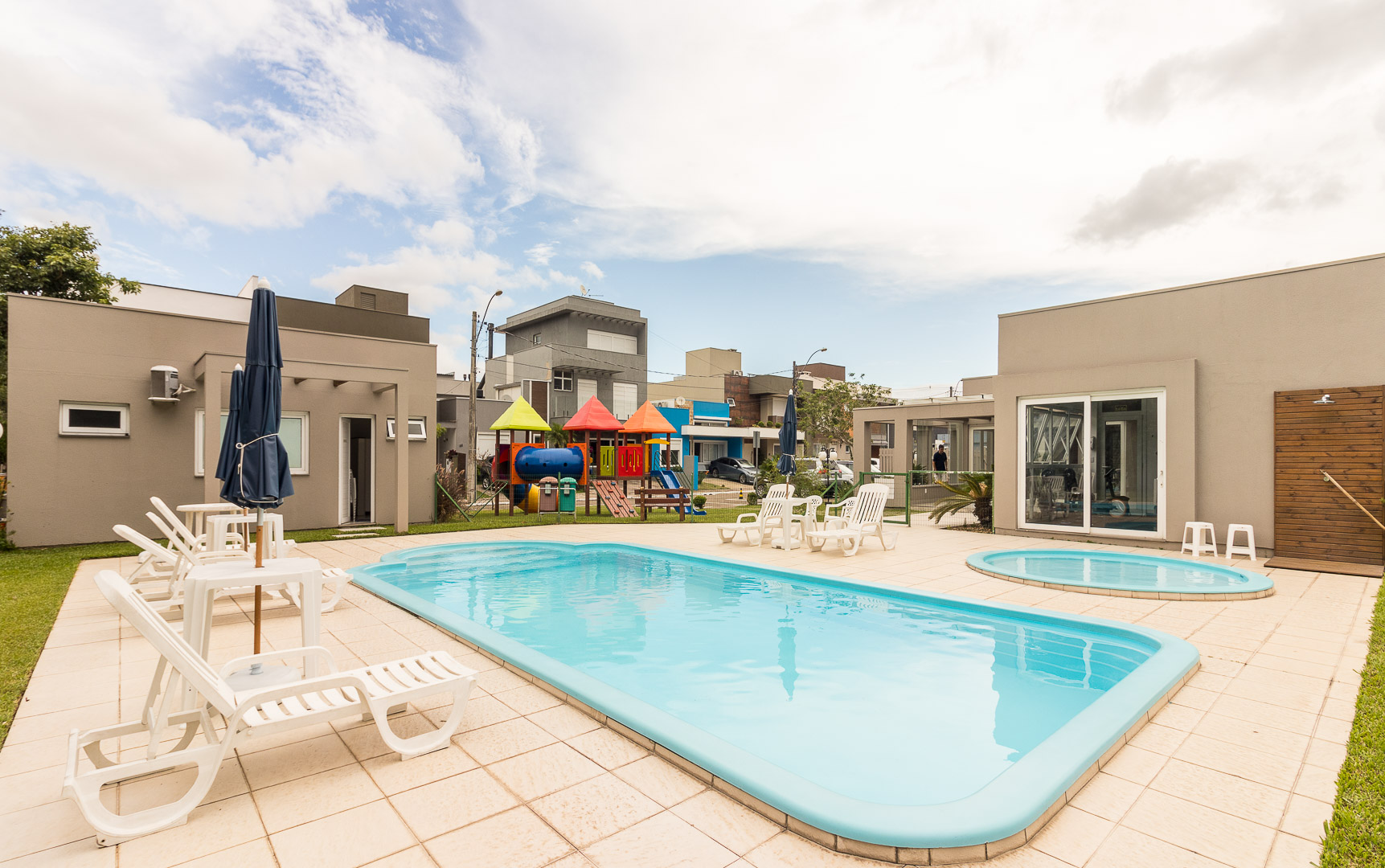 Passow Imóveis vende casa TÉRREA NOVA em condomínio com infra estrutura completa de lazer. São 03 dormitórios sendo duas suítes, banheiro social, living com lareira e pé direito duplo com cozinha integrada, bem iluminada, varanda com churrasqueira e pátio. 02 vagas de garagem.
