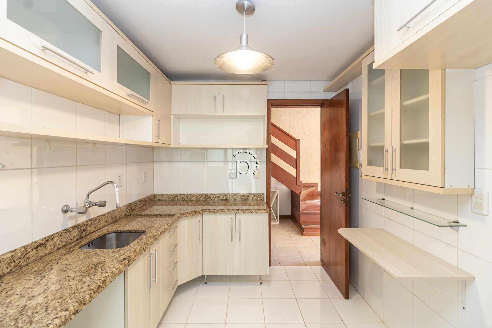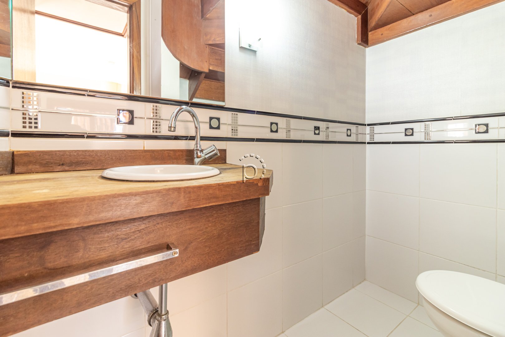 Já no pátio, a varanda com churrasqueira convida a celebrar bons momentos ao ar livre. A casa ainda dispõe de 3 vagas de garagem, sendo uma coberta.