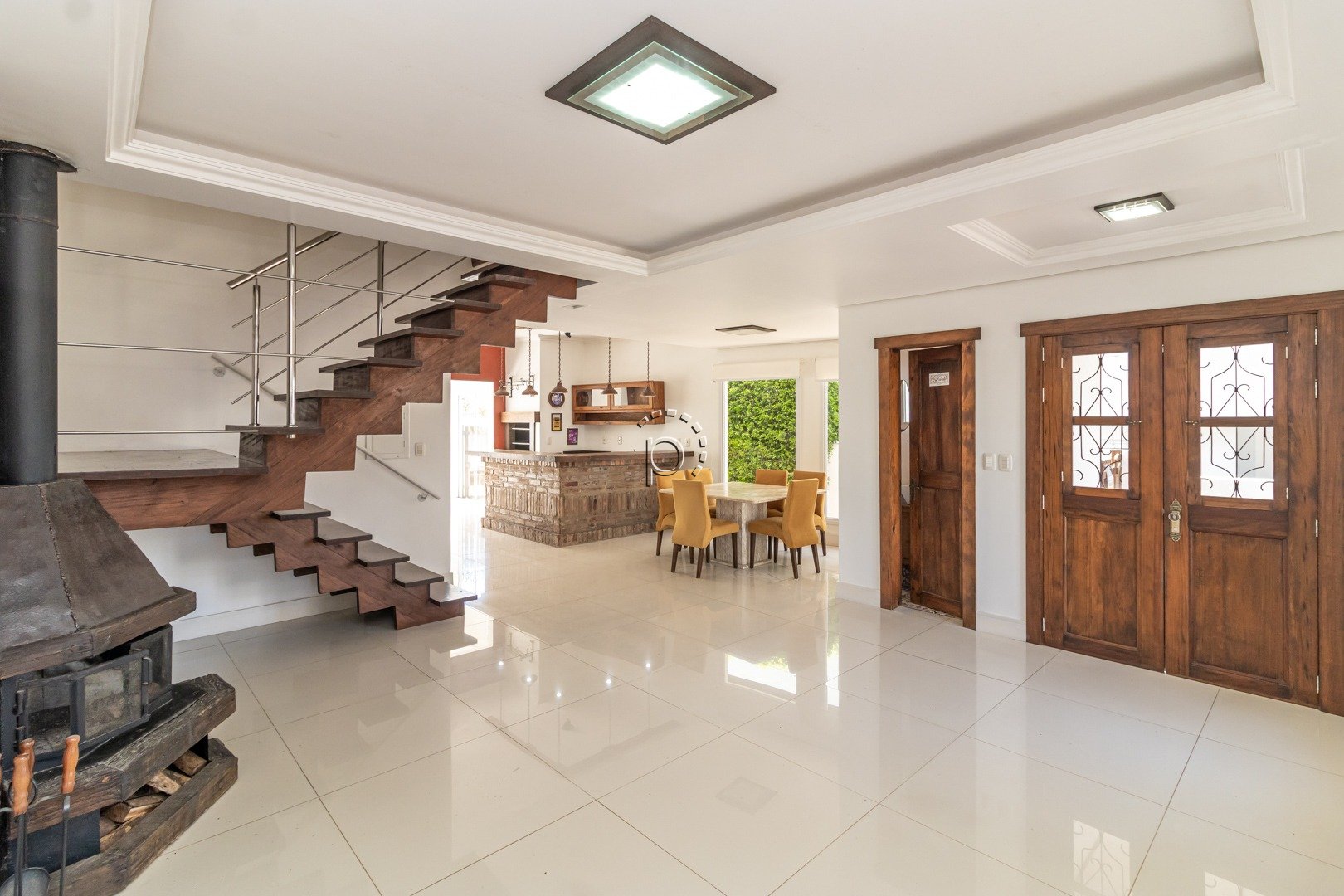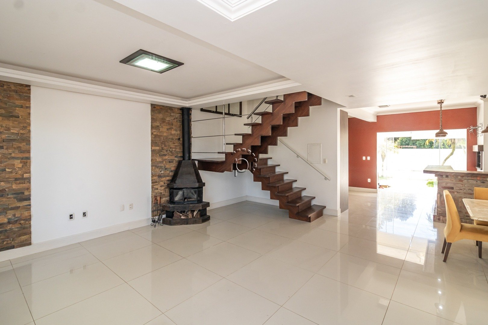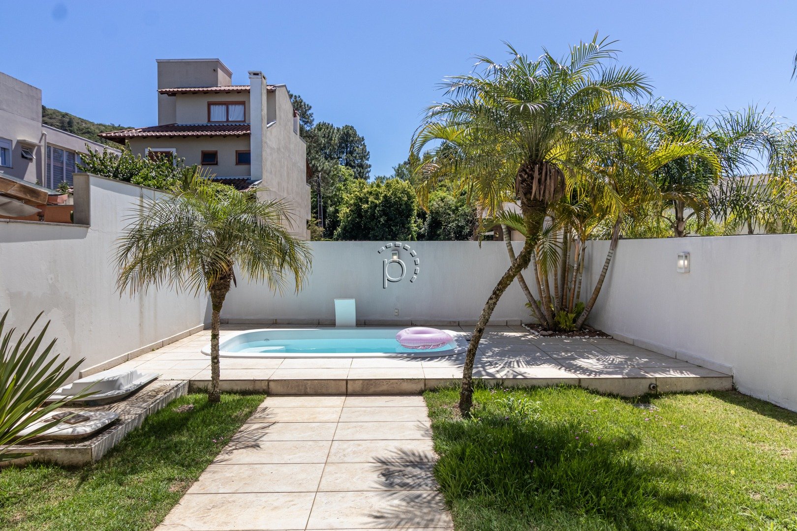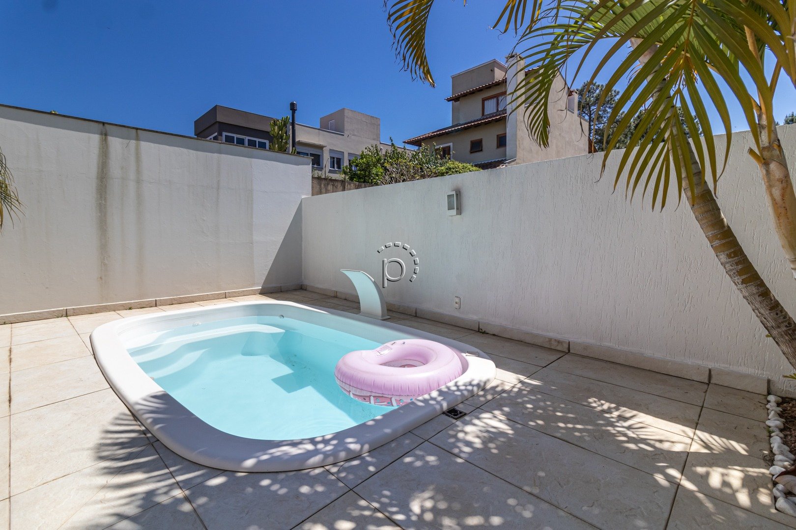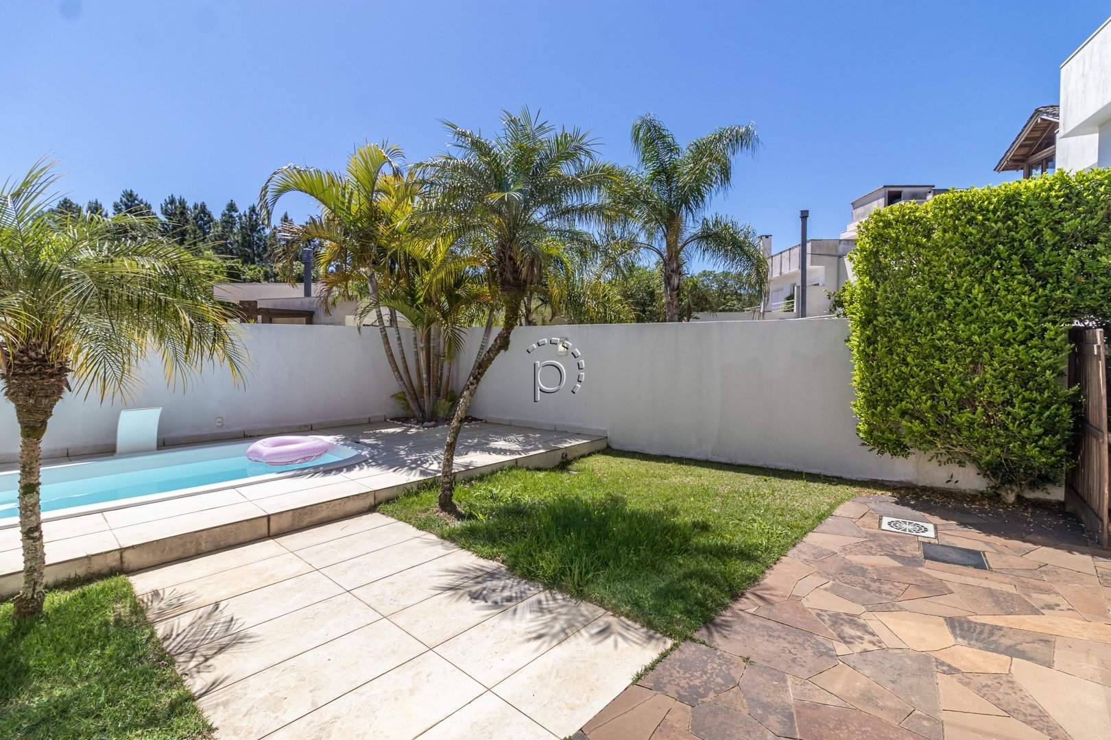 Linda casa de 3 dormitórios, sendo 1 suíte com espaço para closet e sacada fechada, living 2 ambientes com lareira, muita luz natural, lavabo, espaço gourmet com churrasqueira, cozinha com armários, áreas de serviço integrada com aquecedor, pátio com piscina, 4 vagas, 186m² de área privativa, linda vista, condomínio com portaria 24 horas, salão de festas, playground, quadra esportiva, trilhas, quadra de tênis em piso de saibro, localizada próximo ao novo Zaffari, bairro Hípica, zona sul de Porto Alegre-RS.