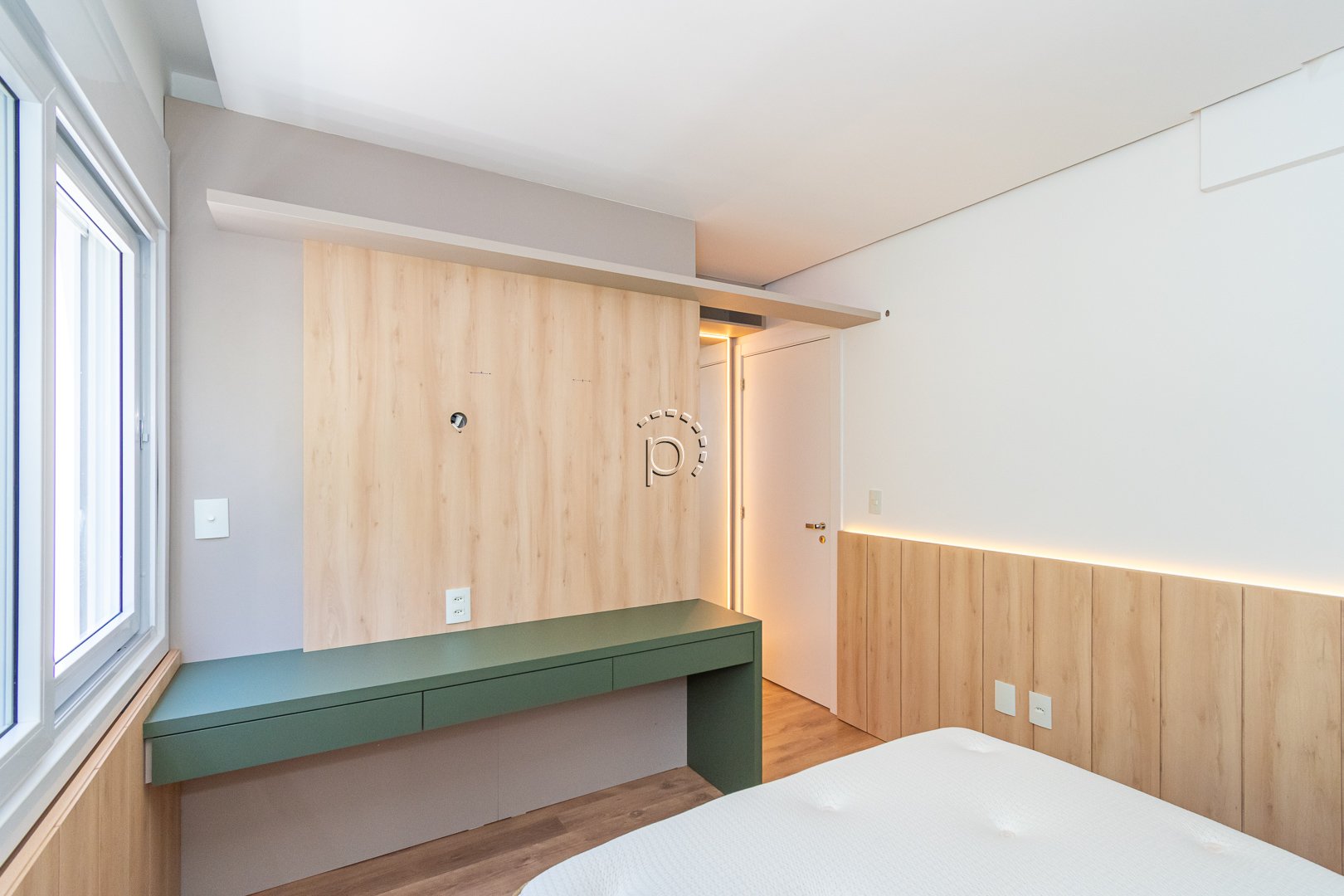 A área social é um convite à convivência, com um conceito aberto que permite a interação dos convidados na sala de estar, jantar, espaço churrasco e cozinha em estilo americano.