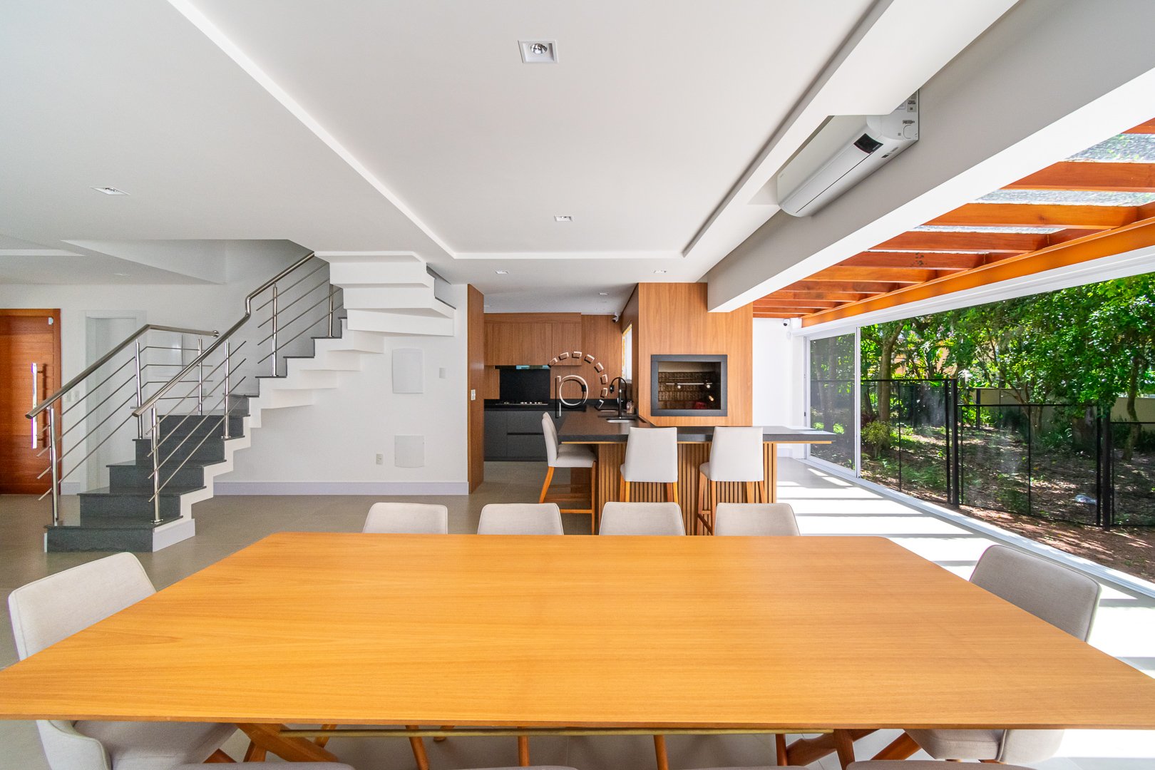 A casa, semimobiliada e com decoração projetada por arquiteto, revela requinte e bom gosto em cada detalhe, especialmente no mobiliário planejado. Além disso, a lavanderia independente, o banheiro auxiliar e as 3 vagas de garagem oferecem praticidade e comodidade para o dia a dia.