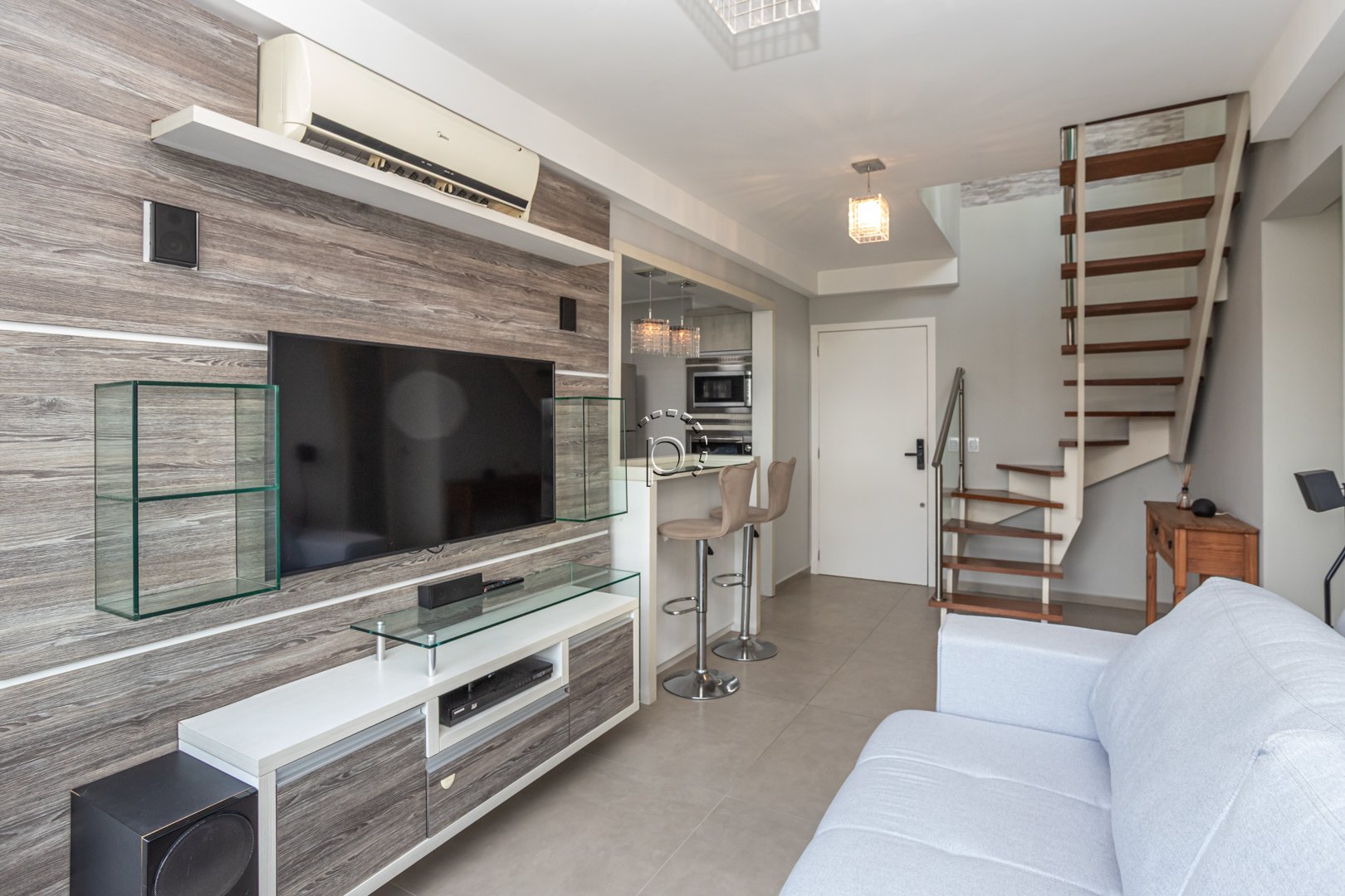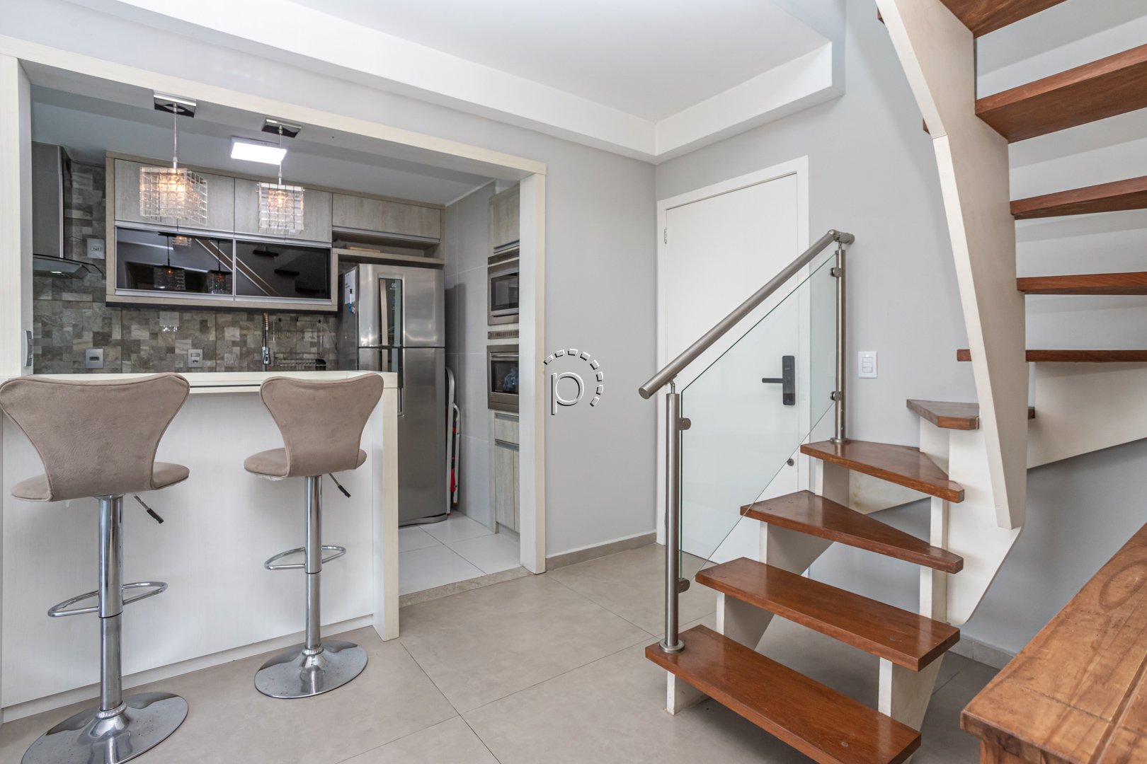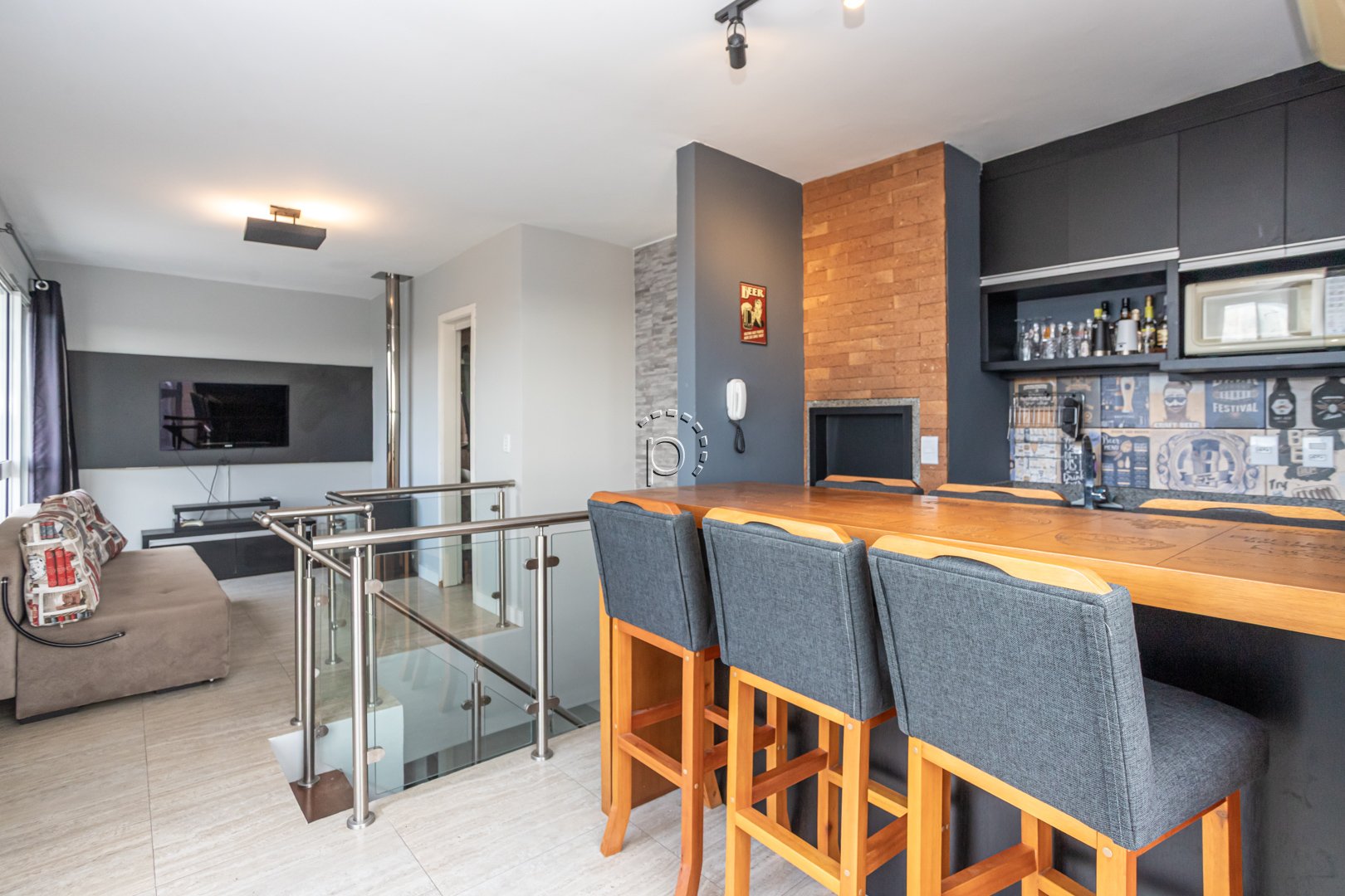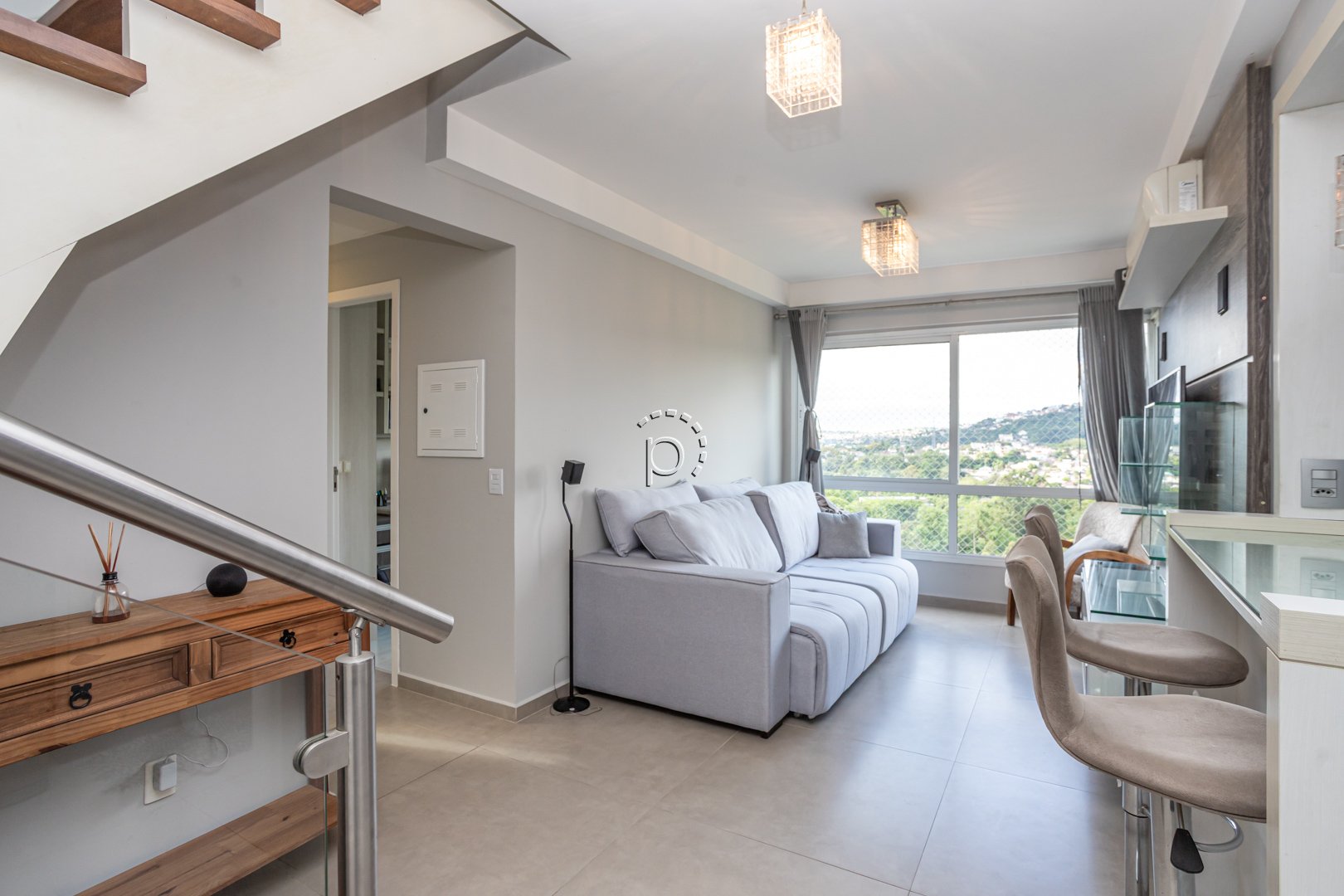 O destaque especial dessa cobertura é o andar superior, que apresenta uma cozinha gourmet com churrasqueira, banheiro social e um terraço com uma vista para o rio Guaíba. Desfrutar do pôr do sol e compartilhar momentos especiais com amigos e familiares torna-se ainda mais especial nesse espaço.