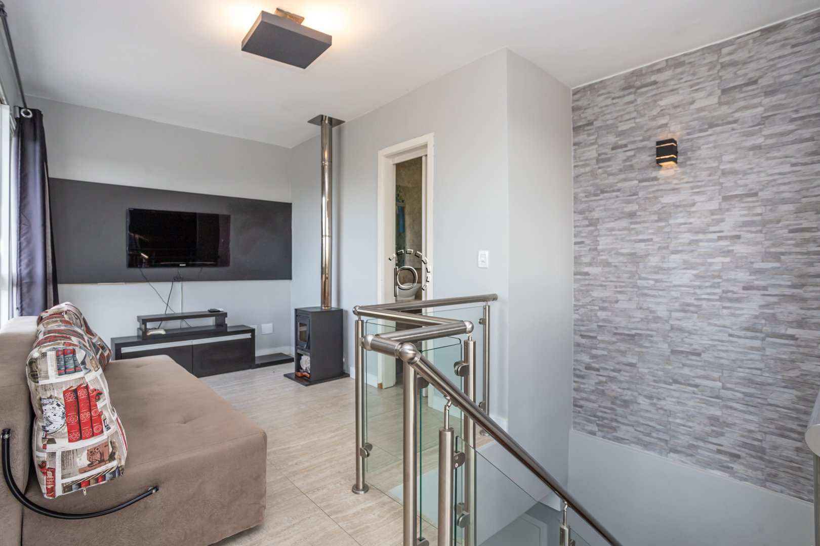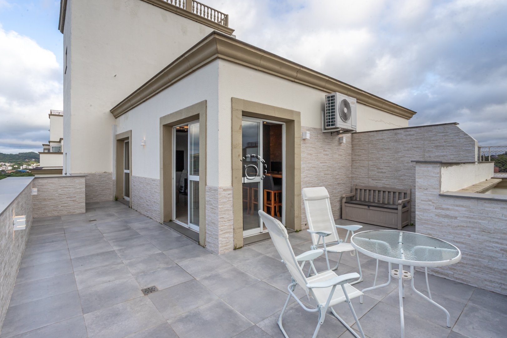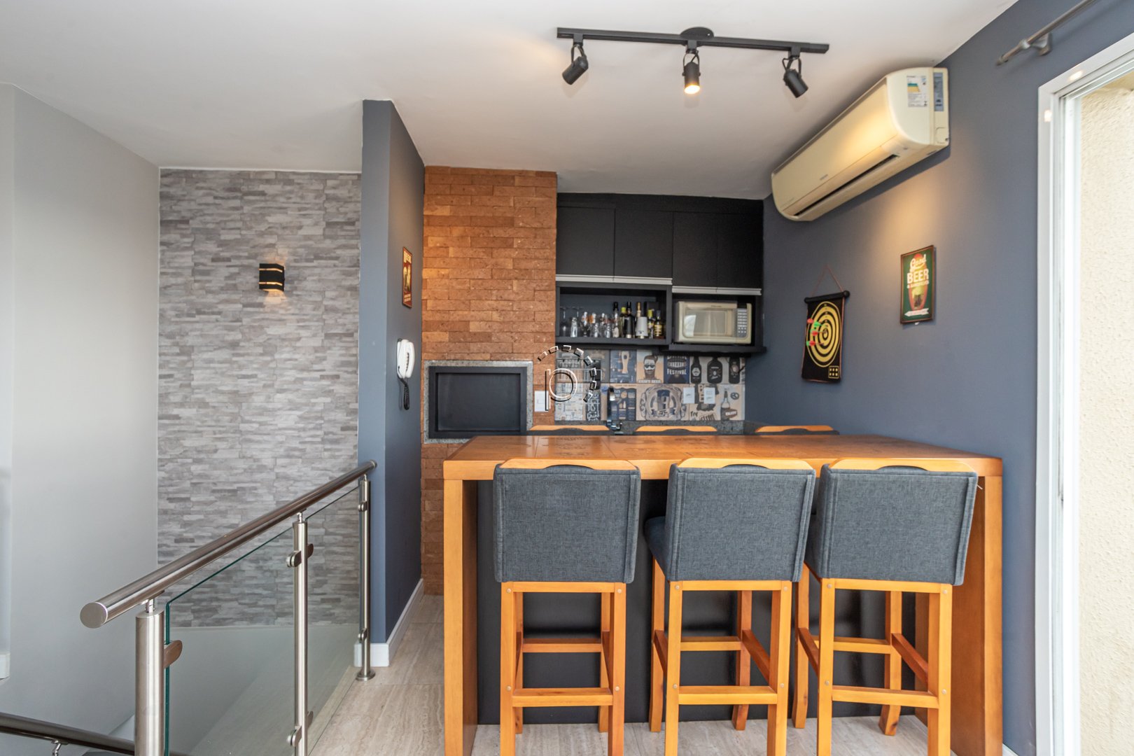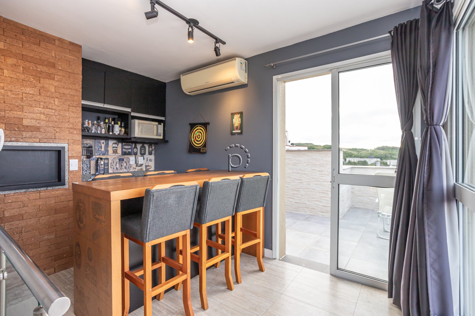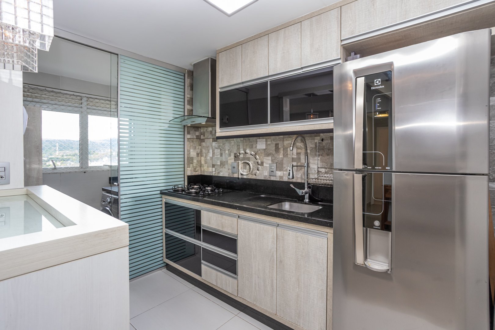 O destaque especial dessa cobertura é o andar superior, que apresenta uma cozinha gourmet com churrasqueira, banheiro social e um terraço com uma vista para o rio Guaíba. Desfrutar do pôr do sol e compartilhar momentos especiais com amigos e familiares torna-se ainda mais especial nesse espaço.