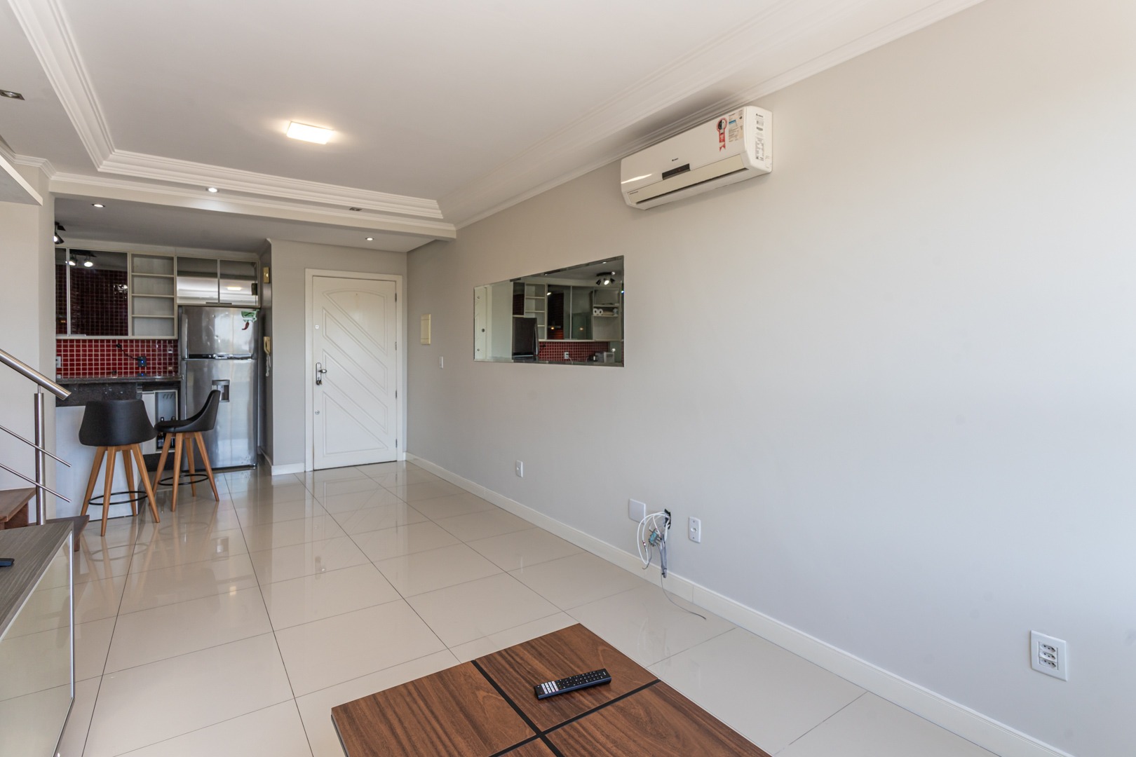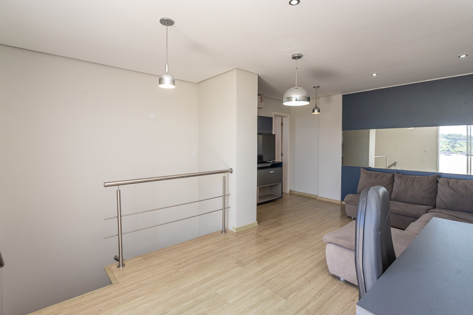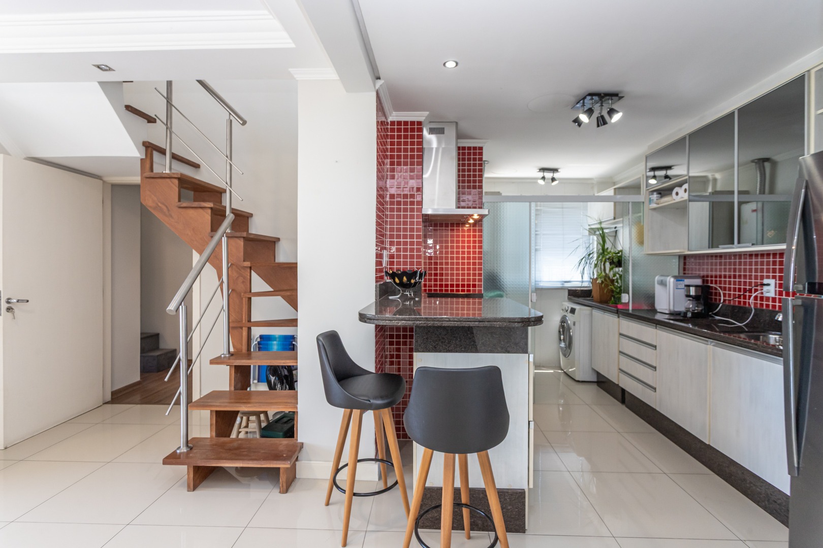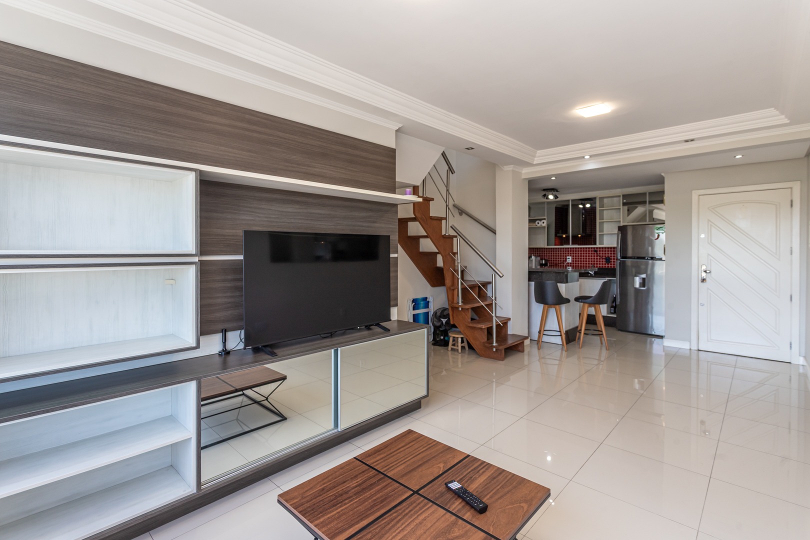 No andar inferior, a planta original foi adaptada para oferecer 1 suíte com closet, proporcionando mais conforto e funcionalidade. O imóvel conta ainda com living para dois ambientes com split, cozinha planejada, banheiro social e 1 vaga de garagem escriturada.