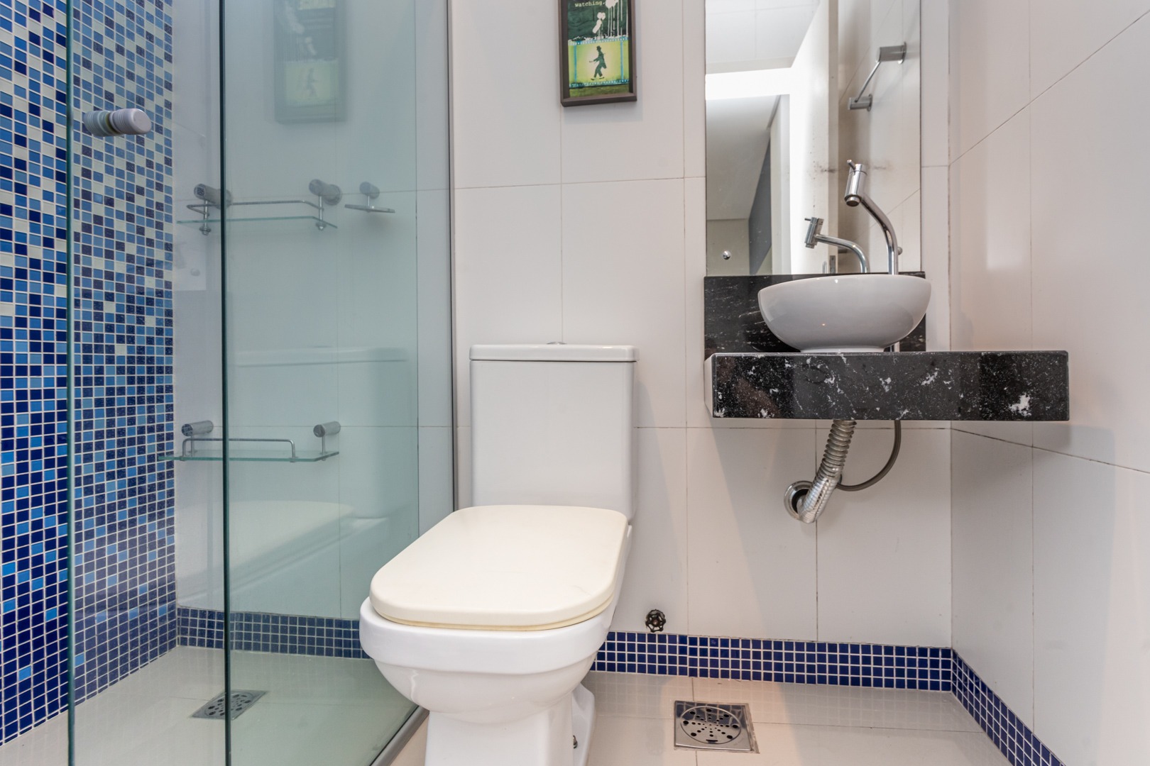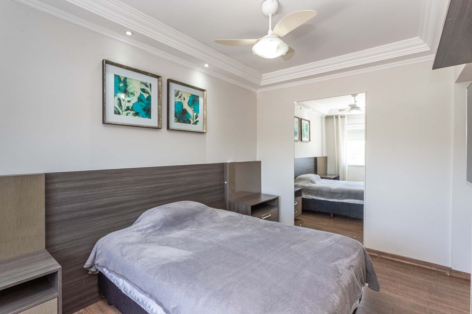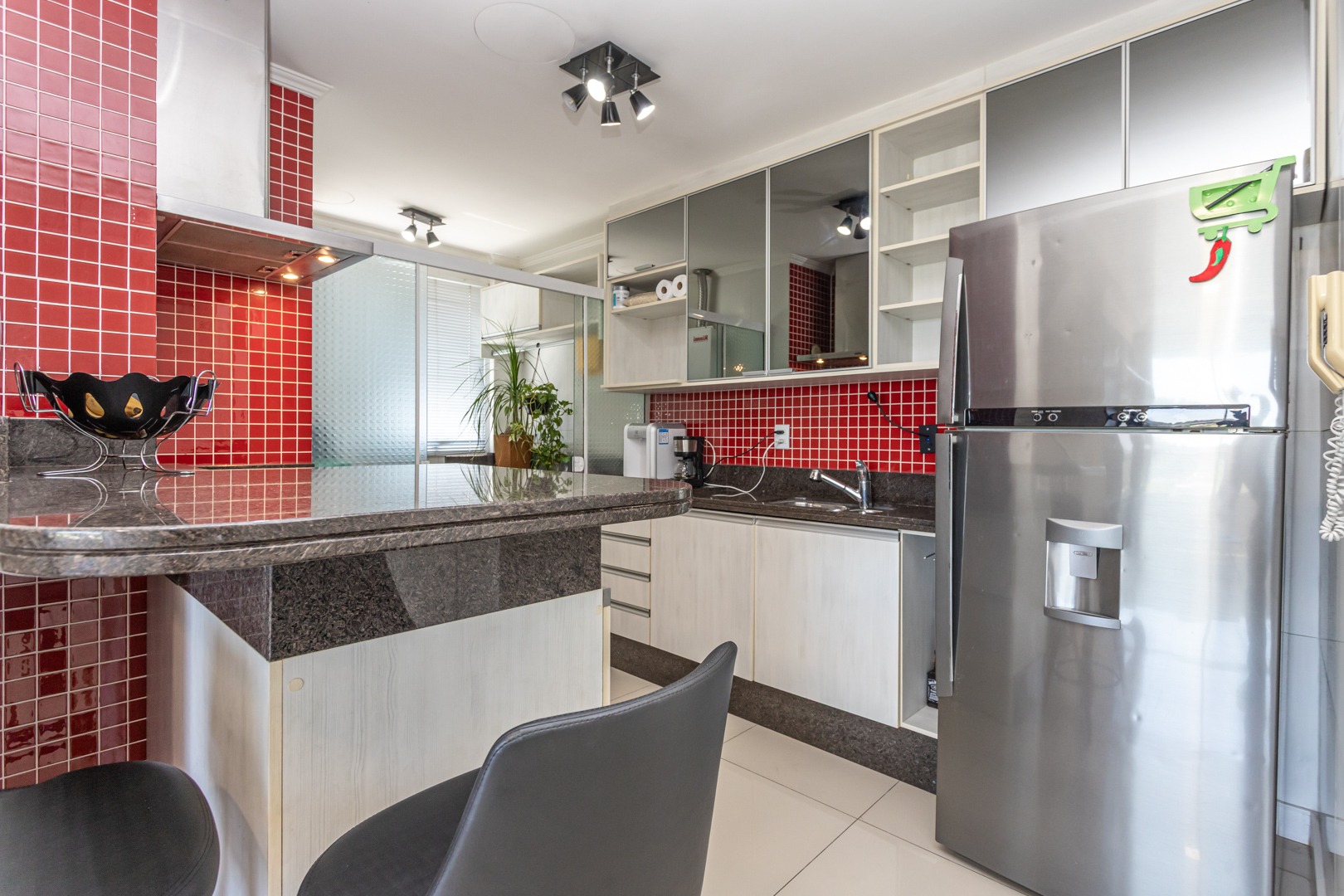 No andar inferior, a planta original foi adaptada para oferecer 1 suíte com closet, proporcionando mais conforto e funcionalidade. O imóvel conta ainda com living para dois ambientes com split, cozinha planejada, banheiro social e 1 vaga de garagem escriturada.