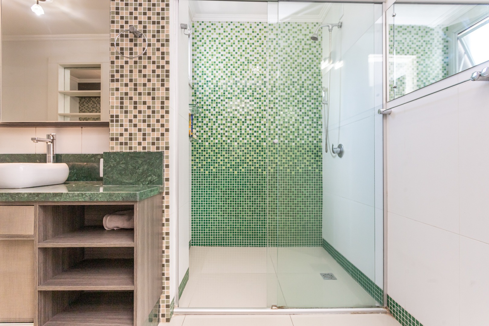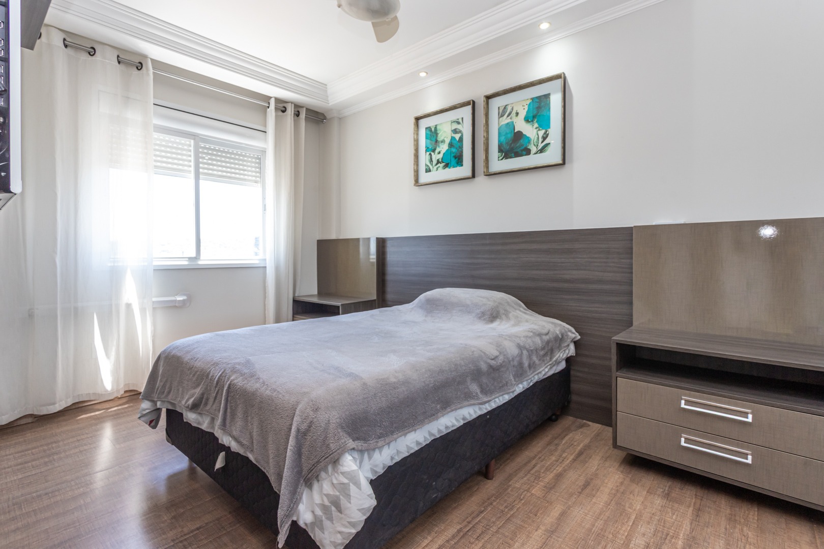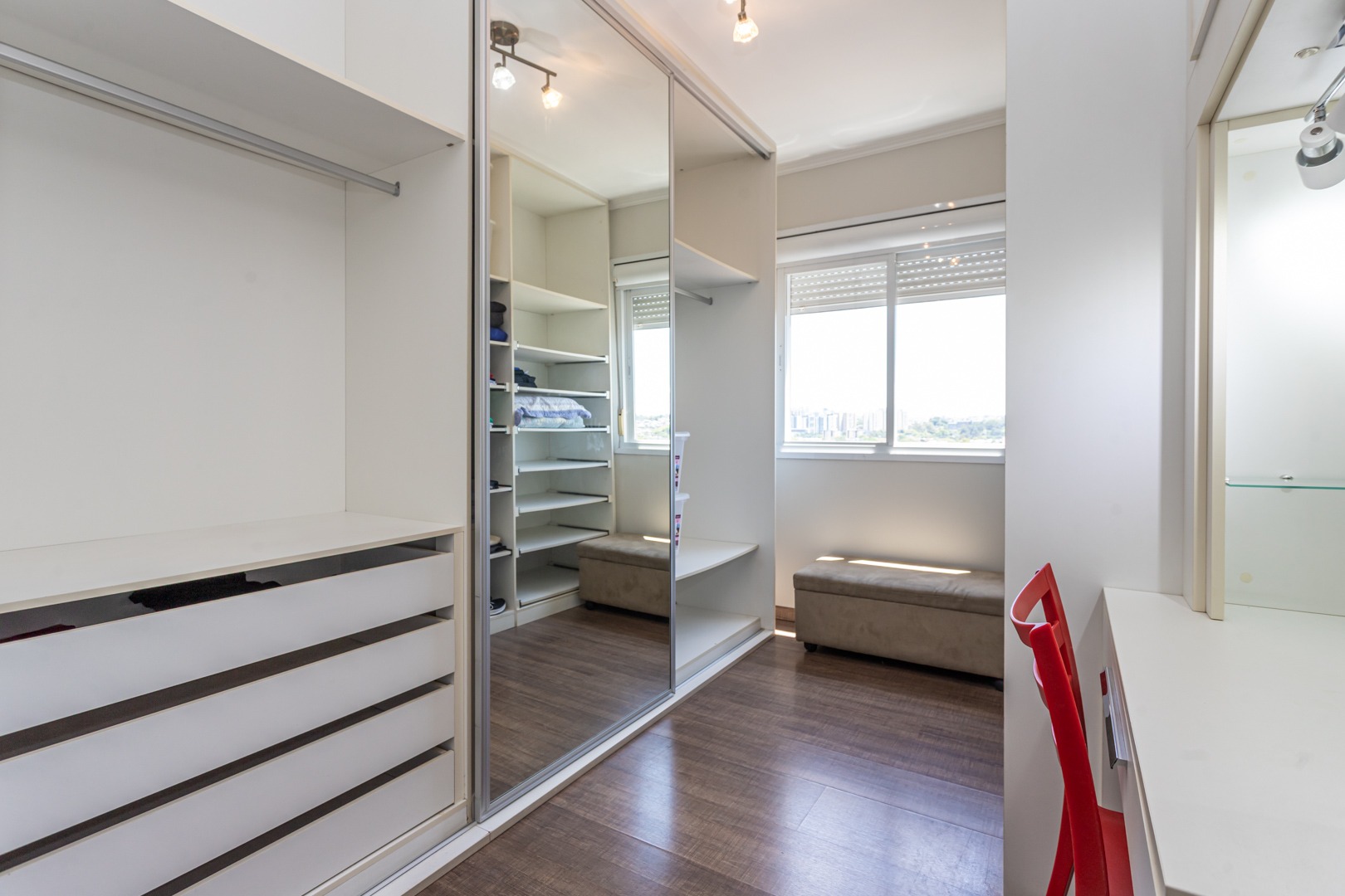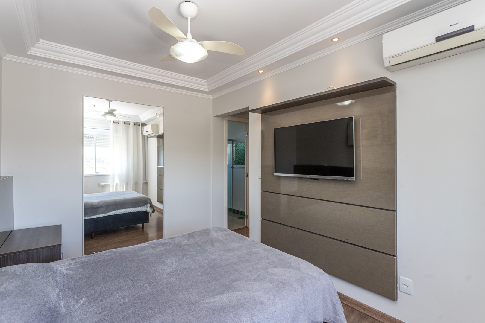 No andar inferior, a planta original foi adaptada para oferecer 1 suíte com closet, proporcionando mais conforto e funcionalidade. O imóvel conta ainda com living para dois ambientes com split, cozinha planejada, banheiro social e 1 vaga de garagem escriturada.