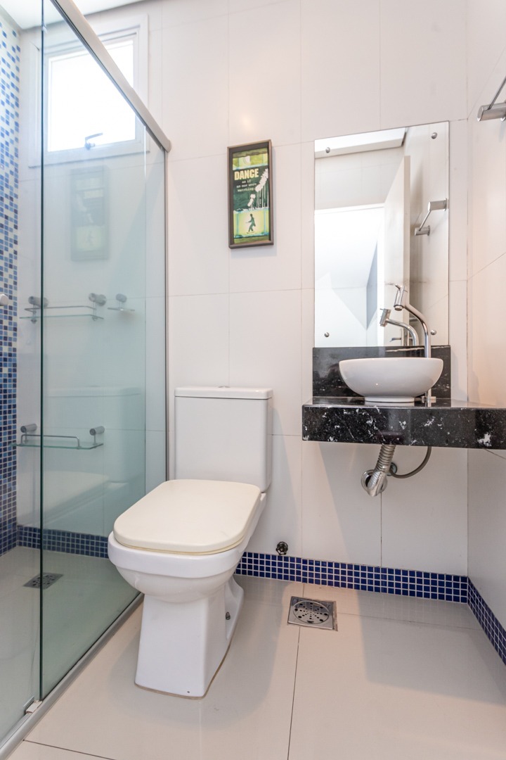 No andar superior, destaque para a sala de estar integrada a um amplo terraço com churrasqueira, perfeito para momentos de lazer. A posição solar privilegiada garante luminosidade ao longo do dia.